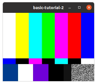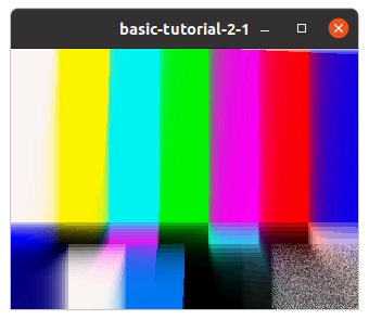 위의 코드는 videotestsrc의 "pattern" 속성(property)을 바꾸는데 pattern 속성은 test video에 어떤 화면을 보여줄지를 결정한다. 위의 코드에서 property-value가 0이 아닌 다른 값으로 시도해보면 다른 화면이 보여지게된다.
