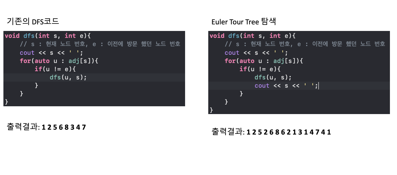 기존의 dfs로의 출력결과와 차이를 확인해보시기 바랍니다.