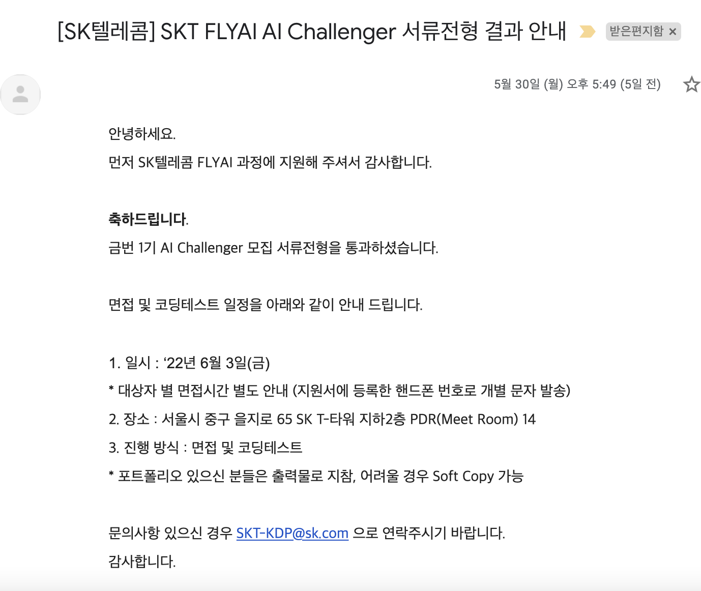 다행히도 서류전형을 합격하였습니다! 서류 마감 후 일주일도 안되어 결과가 나왔고, 면접 또한 메일을 받은 지 5일 뒤에 면접이라니...